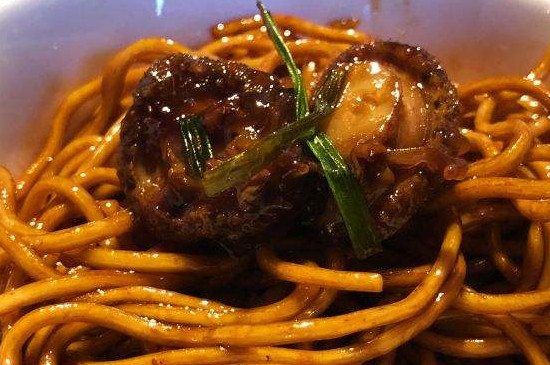鲍鱼罐头内的鲍鱼实际上已经是腌制好的,因此可以直接将鲍鱼捞出切片,洗干净之后过一遍水。将面条煮熟之后用油搅拌均匀备用,热锅烧油后加入鲍鱼片,再加入一些葱段、姜片、金针菇等食材进行翻炒,最后将食材淋在面条上拌均匀。