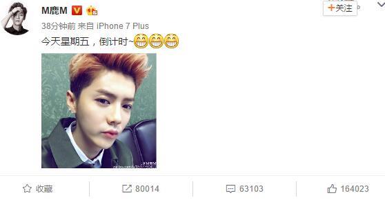 其实鹿晗在最一开始并不是有意要在周五发微博的,而是之前连着有几次发微博都赶在了周五,所以索性就在周五这一天定时打卡,因为是周五,上班上学的第二天都休息,心情也比较好,所以鹿晗的这个习惯很顺理成章的保持了下来