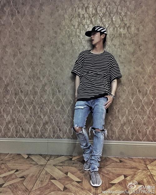 第二当然就是破洞裤了,鹿晗对破洞裤有一种执着,可是粉丝也有一种执着叫鹿晗你该穿秋裤啦