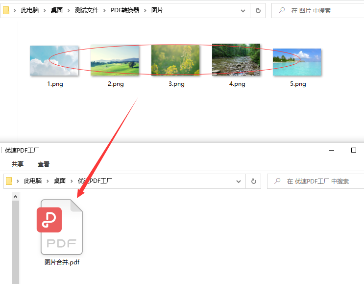 步骤四:通过对转换后pdf文件的查看,我们发现我们准备的多张图片此时已经被合并成了一个pdf文件,合并成功。