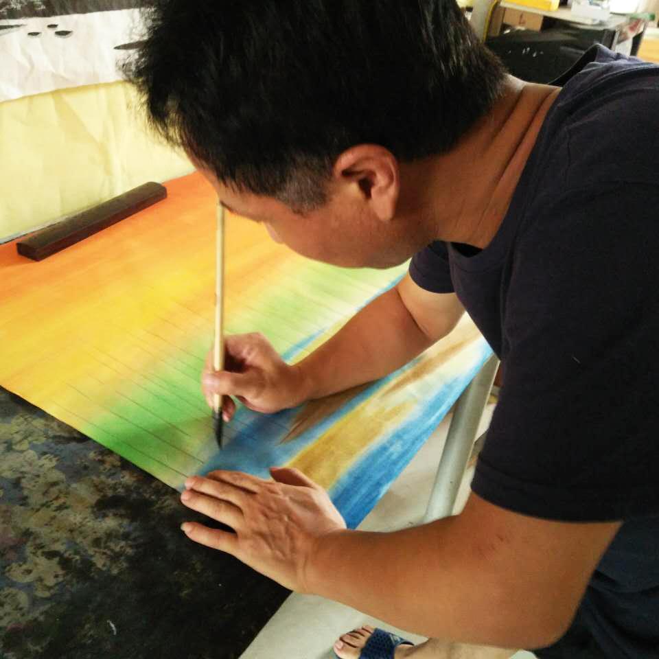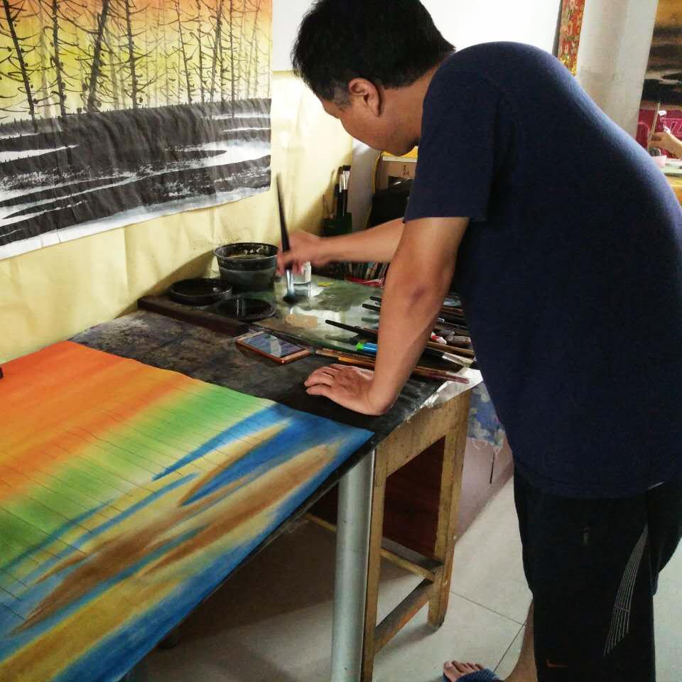 在颜料的选择上,也可以说是煞费苦心。为了追求西方油画的那种艳丽之美和层次质感,夫妇俩走遍中国大江南北,历史两年,终于在西藏与新疆接壤之地一处被当地人命名为“泥玛河”流域地带,找到了一种七彩颜料石。在随后的半年时间里,夫妇俩在北京的朦胧书画艺术研究院里,随同一众研究员和学子,终于发明了中国独一无二的国画颜料,也就是我们今天俗称的“原料”,价格堪比朱砂,克比金贵。