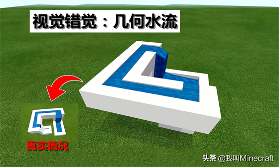 几何水流是最为经典的“视觉错误”,相信玩过纪念古碑的玩家都见过它。那么我们如何在《我的世界》里也造这样一个几何水流呢?水流从高处流向地处,即使mc如此不科学,也符合这个定律,而图片中的水流却可以逆流而上,这是为何呢?你看出端倪了么?图片左下角就是几何水流的真实面貌。