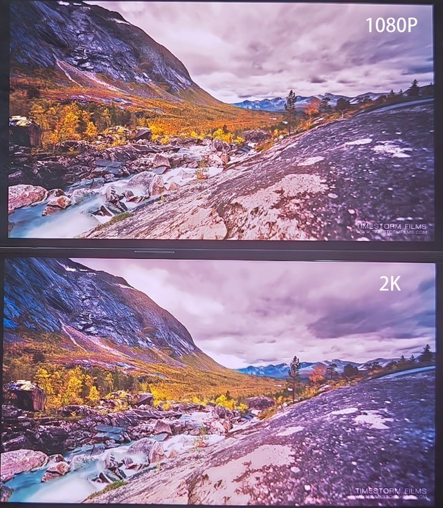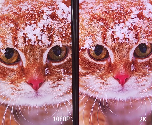 这一点在看超高清、2K甚至更高级别的影音视频时会尤为明显,从对比来看,二者色彩相对接近,都属于很鲜艳的那种,但细看会发现2K屏幕显示要更精细,画面也比较清晰,1080P还是可以看到一些“大果粒”,显然近看的话,2K的显示效果是要强于1080P的,这一点毋庸置疑。