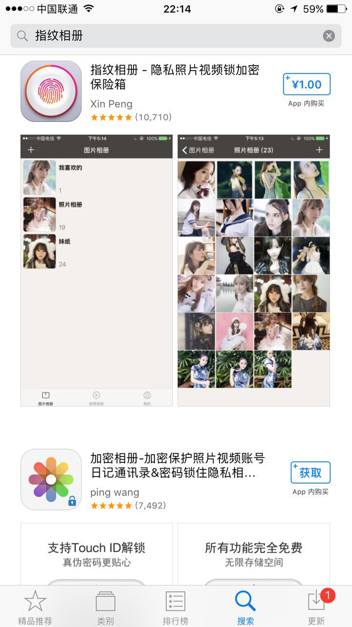 1、手机打开App Store,搜索 “ 指纹相册 ” ,下载应用!当然,其他加密软件,效果也一样。