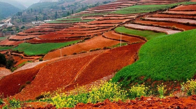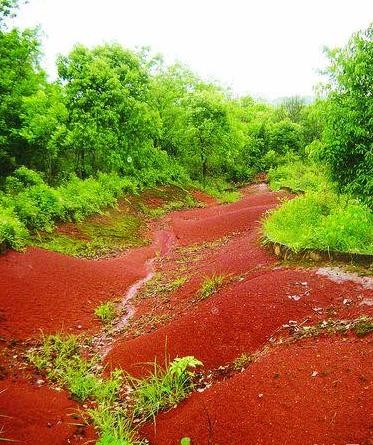 为什么这里的土壤是红色的呢?和其他所有土壤一样,红壤是岩石长期风化形成的。在我国南方高温多雨的气候条件下,土壤中的许多化合物都被洗去,然而氧化铁最不易溶解,反而被固定了下来,所以土壤就变成了红色。