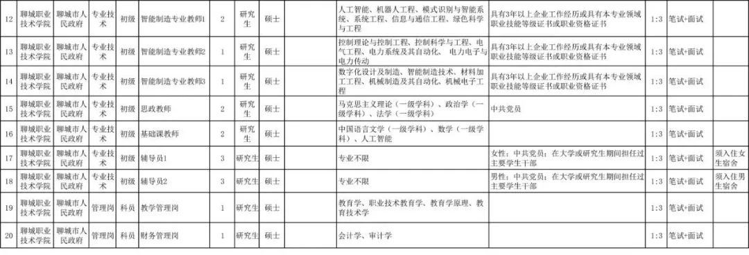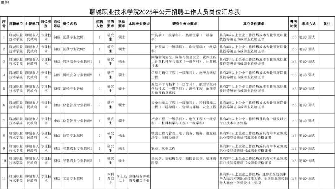 招聘岗位:招聘岗位及具体要求,详见《聊城职业技术学院2025年公开招聘工作人员岗位汇总表》。