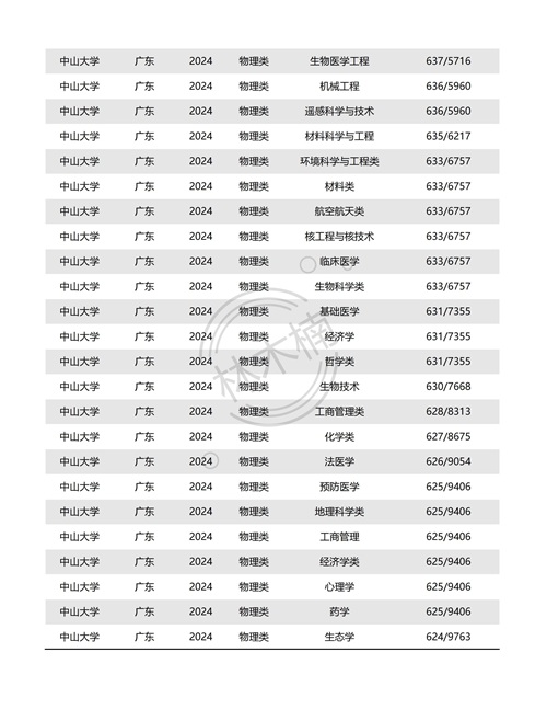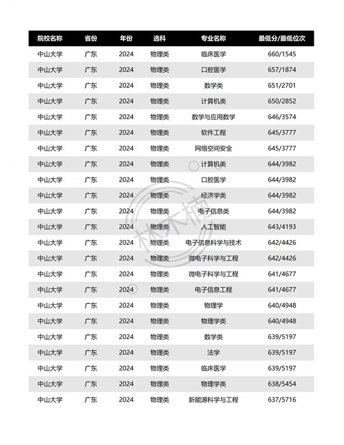 林木楠为广东物理类考生整理了最新中山大学专业分数线。