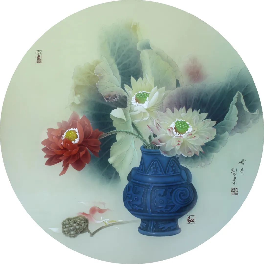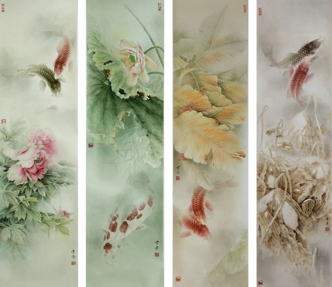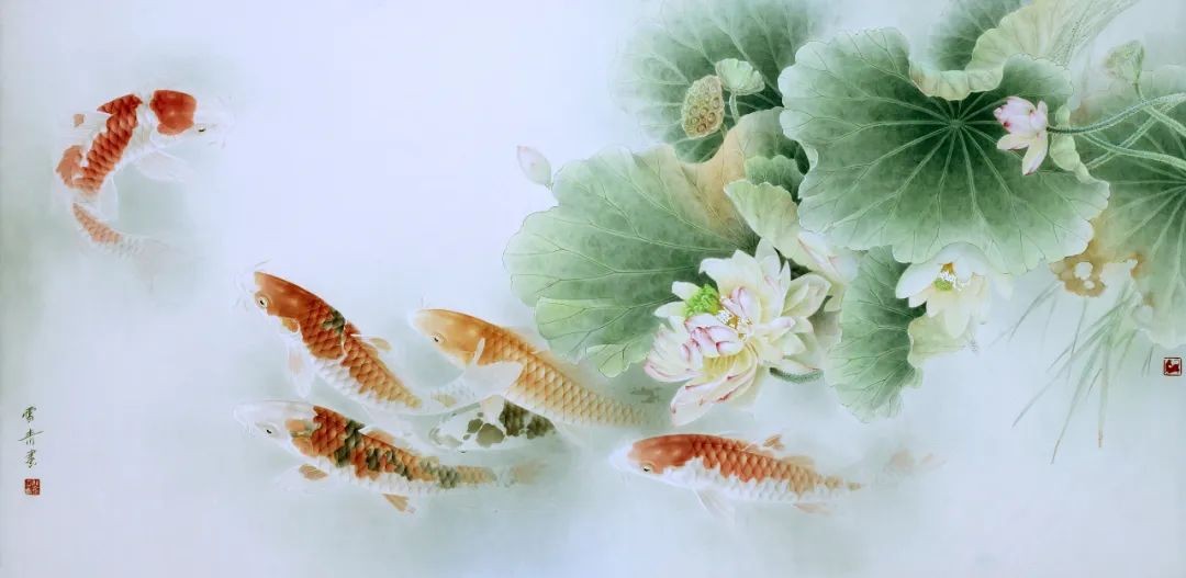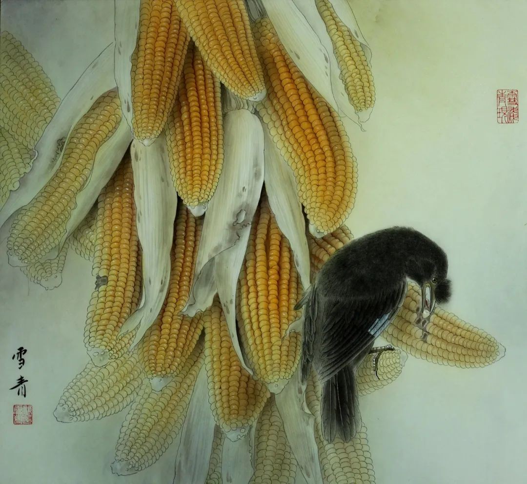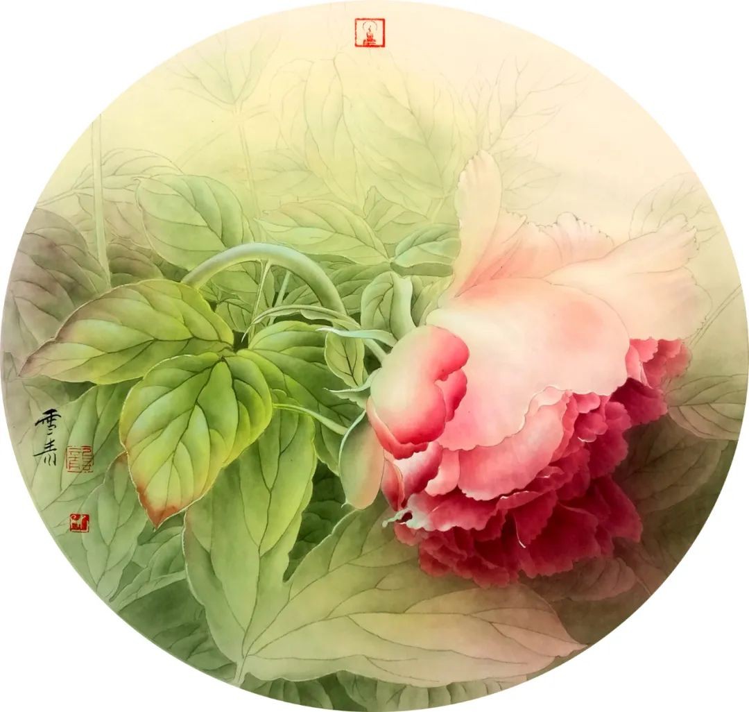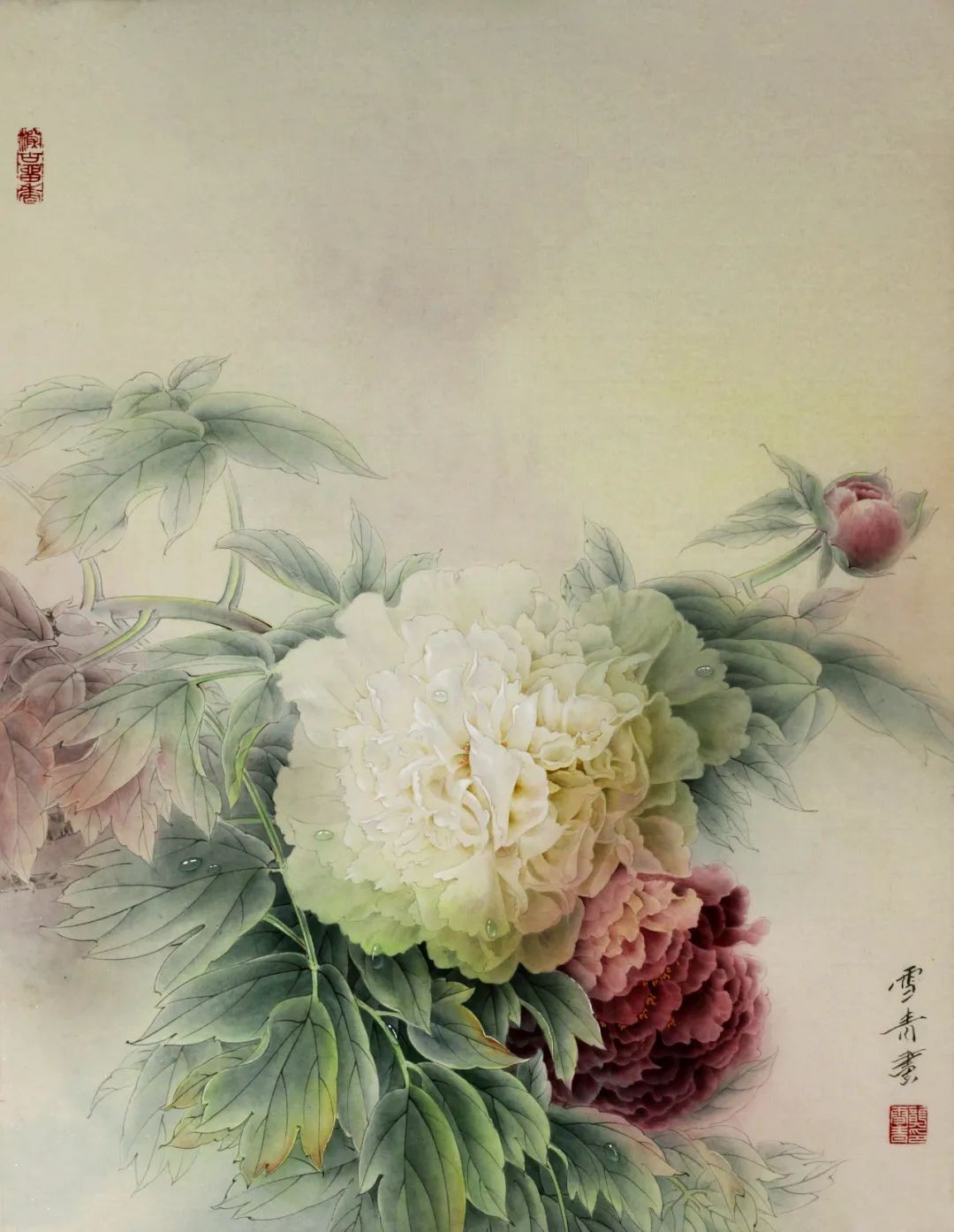 龚雪青的作品自然清新、典雅俊秀、色彩丰富协调、构图严谨,既传承了中国画的优良传统又结合了西方绘画的特点,营造了一种真且幻的场景。画面中的虚实处理,真实的色彩,精巧的布局无不显现出作者的艺术功力。