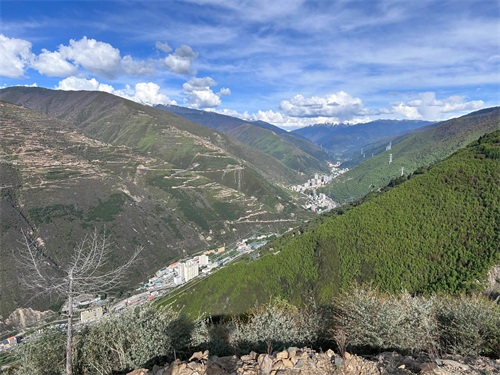 上山途中还有几个观景点,可以俯瞰呈长条状的马尔康城区。