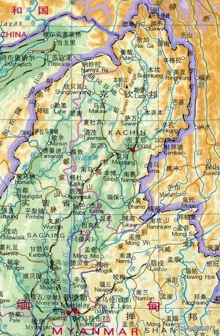 一路从迈立开江中游的孙布拉蚌镇沿着南部山地迁移,尔后又向西南方向迁移,另一路则沿着三角地带的山脉,从恩梅开江沿岸南下并逐渐定居下来。如下图