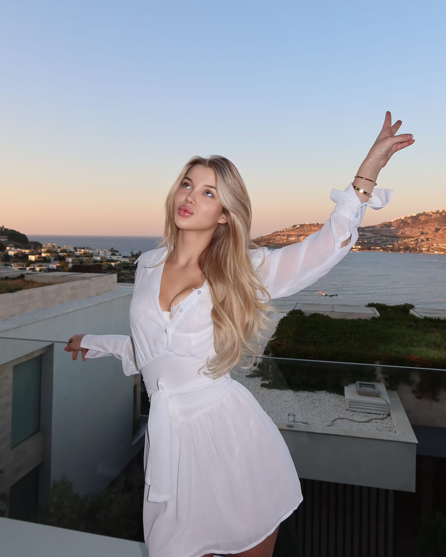 在穿搭上,白人美女擅长选择适合自己身材的单品,如高腰裤和贴身裙装,这些服装不仅勾勒出她们的曲线美,还进一步拉长了腿部线条,使整体比例更加完美。对于上衣的选择,她们偏爱短款或修身设计,以此突出纤细的腰身。在晚装选择上,许多白人美女会选用经典的深色系长裙,或者带有镂空和露背设计的礼服,既低调奢华,又不失性感气息。她们还喜欢搭配精致的饰品和简洁的妆容,使整体造型更加和谐、耐看。