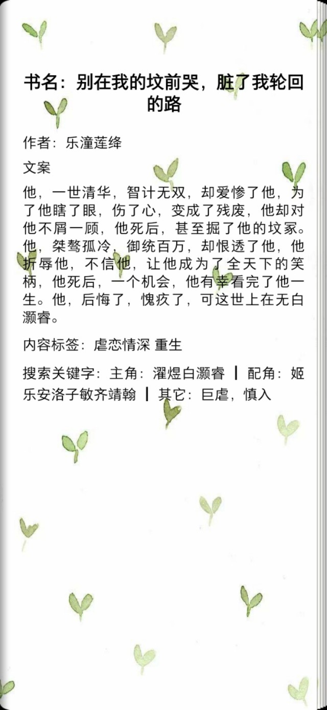 2、《别在我的坟前哭,脏了我轮回的路》by乐潼莲绛