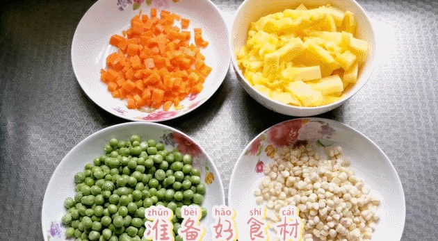 菠萝玉米胡萝卜豌豆生抽熟米饭