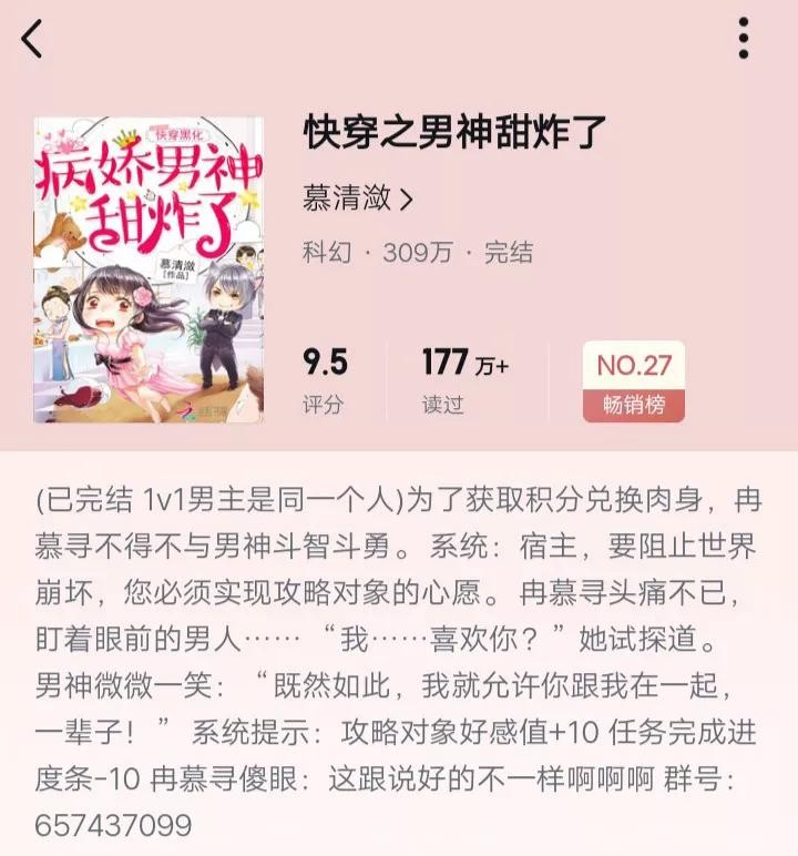 书单066:《快穿之男神甜炸了》男主病娇值爆表
