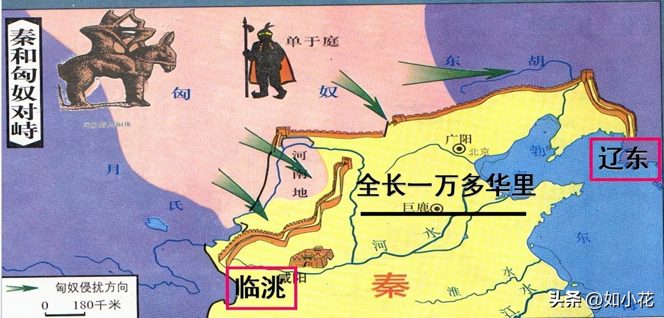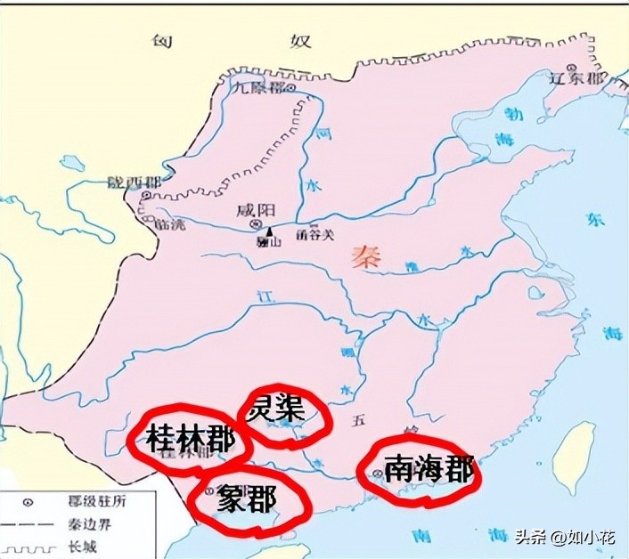 开拓疆域,北击匈奴,修筑万里长城,南征岭南,修灵渠,设三郡。