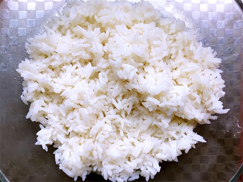 1、蒸好的米饭,盛出一碗放入寿司醋,搅拌均匀,放一边等待。
