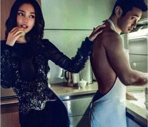 黄晓明赤裸上身穿个围裙 在厨房做饭 杨颖手搭在黄晓明肩膀上 足以看出平时对杨颖得宠溺 也能体现杨颖得地位