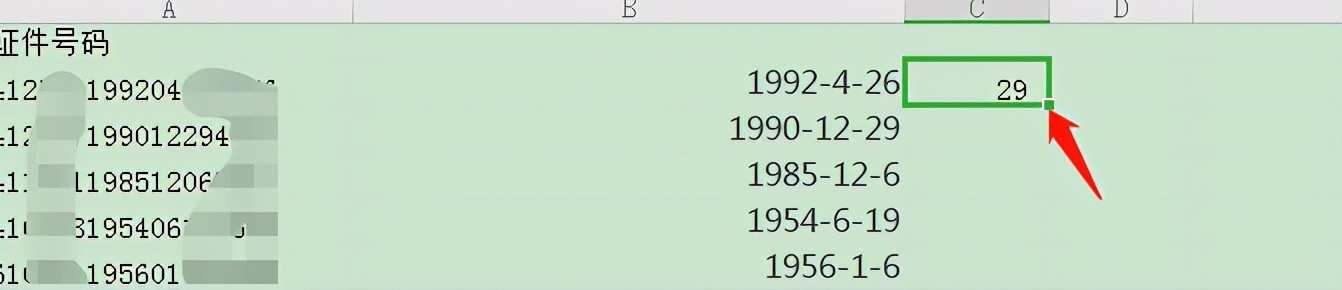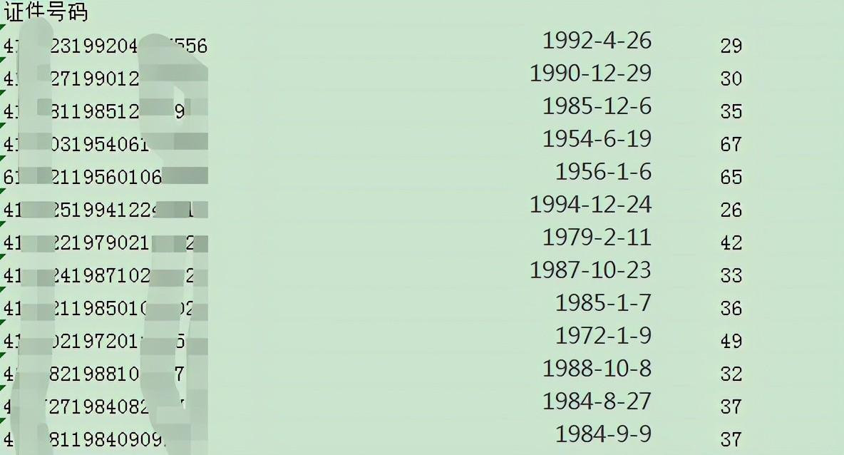 八、点击右下角,下拉菜单,就会把所有身份证号生成年月日和年龄,如下图: