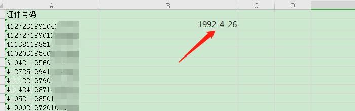 一、首先需要把身份证号复制在Excel中,如下图所示: