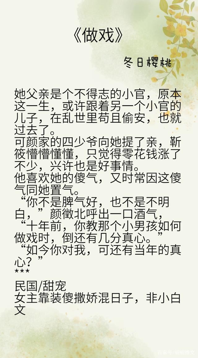 民国言情文盘点:《云胡不喜》《做戏》《民国反派大小姐》