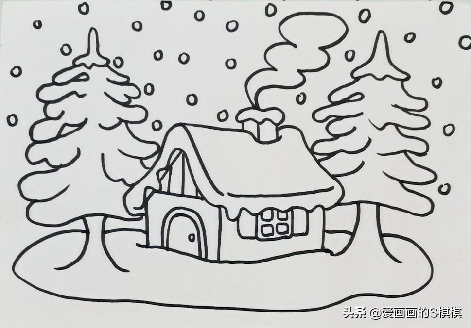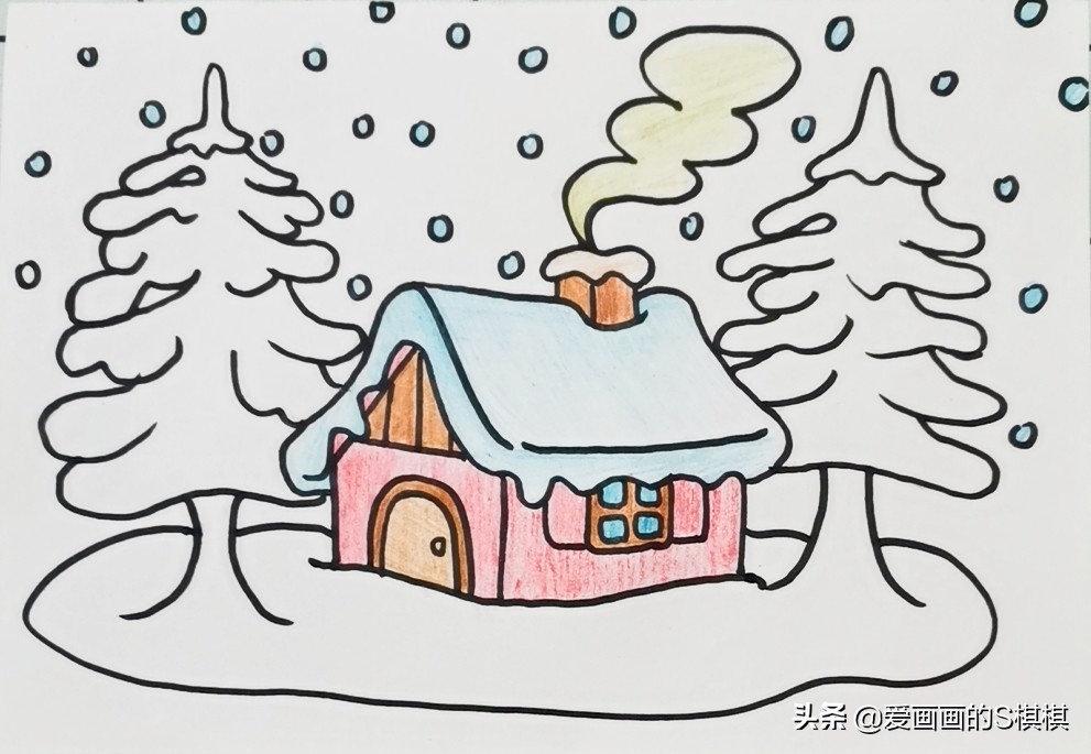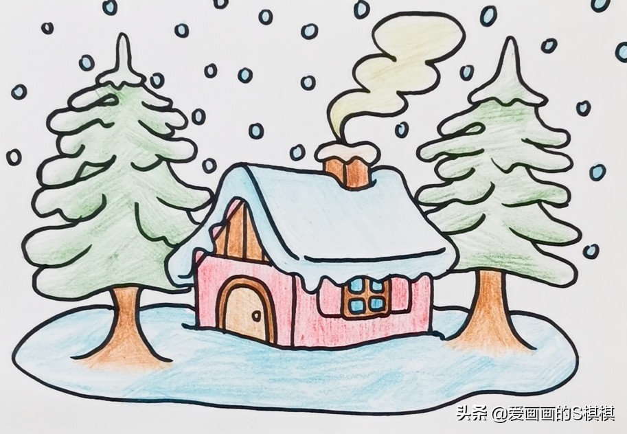 少儿美术彩色铅笔画《冬天的风景简笔画》儿童画画风景简单画法