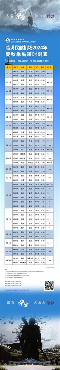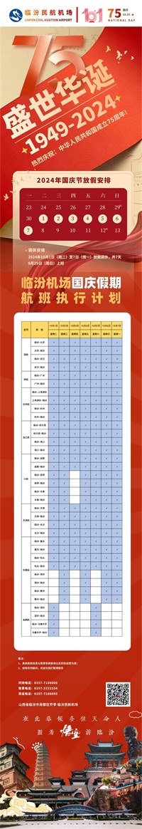 国庆假期即将到来,日前,临汾民航机场发布国庆假期航班计划,计划出门的小伙伴快提前了解一下吧~