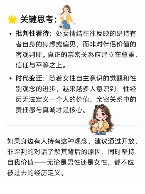 如果身边有人持有这种观念,建议通过开放、非评判的对话了解其背后的原因,同时坚持自我价值——无论是男性还是女性,都不应被过去的经历定义。