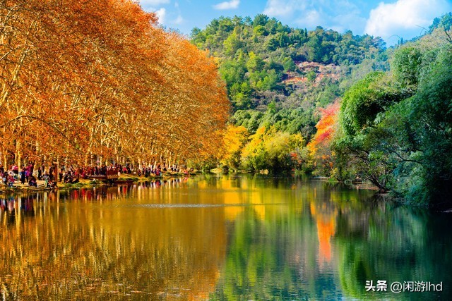 如今的黄金大道,少了些乡土气,多了些现代感观。没有变的,是那静静流淌的河水,和那金黄金黄的梧桐树。自然还有那川流不息的游人。