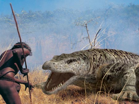 澳大利亚四面环海,与其它大陆隔绝,这个岛屿大陆几百万年来为进化实验提供了一个独一无二的生存环境。而对我们大多数人来说,我们对于澳洲大陆的印象就是一个荒凉之地,居住着许多可爱的小袋鼠,那里最大的猎食动物就和狗的大小差不多,但是在更新世的150万年前的时间里,澳大利亚是一个截然不同的世界。当时这片土地生活着许多巨型有袋哺乳动物,它们可一点也不可爱,想象一下,一个身高2米多,体重500斤的袋鼠站在你的面前你还会觉得它很可爱吗?再试想一头接近3米高,2700斤重的袋熊生活在这片土地上,你还会觉得这是个只有小动物生存的地方吗?显然不是,在更新世这些动物却是古巨蜥的食物,可想而知,古巨蜥有着超强的掠食能力。
