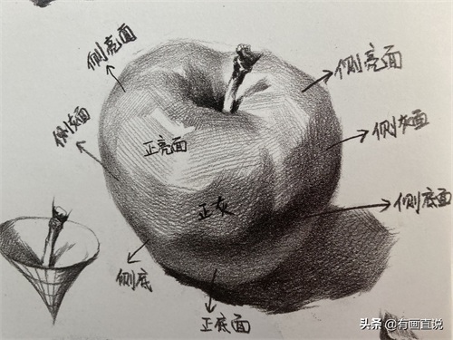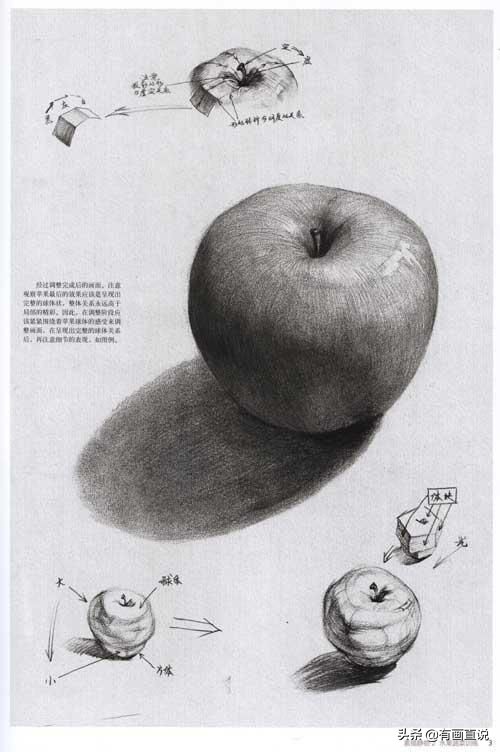 2:用块面的观察和表现手法:来画苹果。