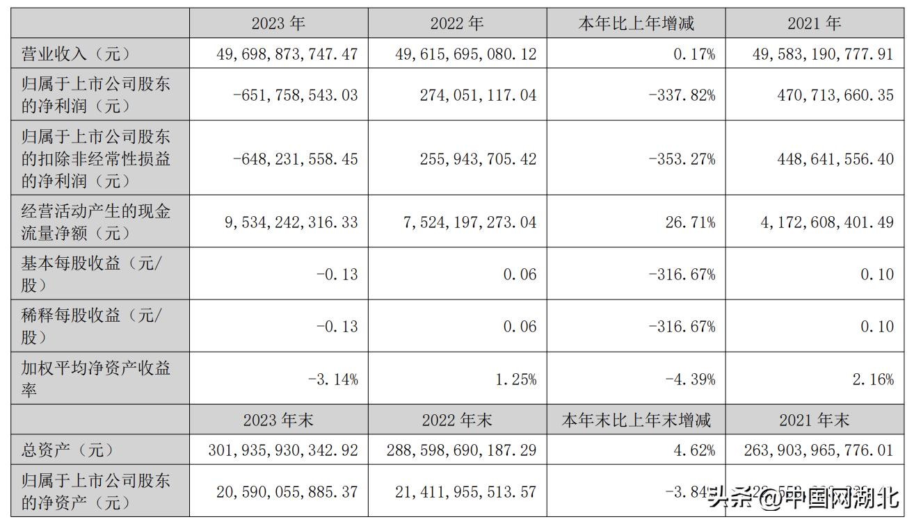 4月29日,天茂集团(00627.SZ)发布2023年年度报告,期内营业收入约497亿元,同比增长0.17%;归属于上市公司股东的净利润为-6.52亿元,同比减少337.82%。