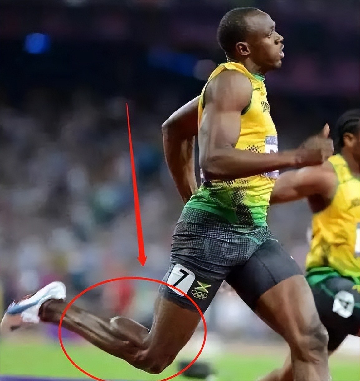 很多人知道字母哥跟腱34.3cm,这已经是NBA历史第一长度的跟腱,但是在博尔特面前差远了。博尔特几乎整个小腿都是跟腱,他的跟腱可是有42cm。这跟腱几乎是普通成年人的3倍,这差距太大了。就是有了这跟腱,博尔特才能在后半程是无敌存在,如果他全力以赴跑,100米估计能进9秒5。