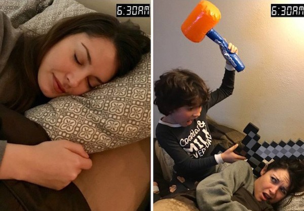 左边是这位妈妈生完孩子后的照片,右边是生孩子前的照片。可以说这两张的差别是十分明显的,生孩子前青春靓丽,两个眼睛炯炯有神,水灵灵的。而生完孩子后瞬间老了十几岁,双眼无神,显得很疲惫,两个黑眼圈格外明显,面容看上去也无精打采,可见,为了照顾两个孩子,这位妈妈是付出了多少睡眠和牺牲。