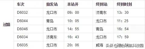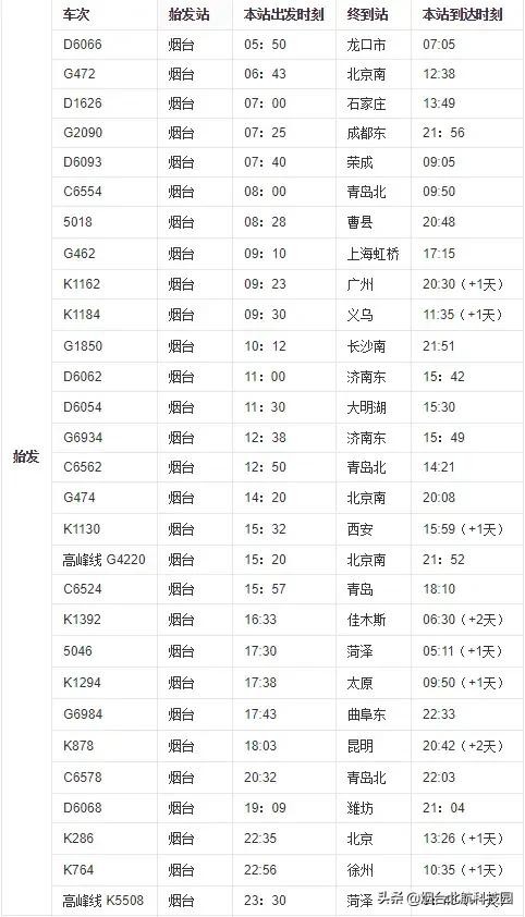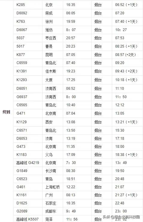 烟台站列车时刻表(自2019年1月5日起实行)