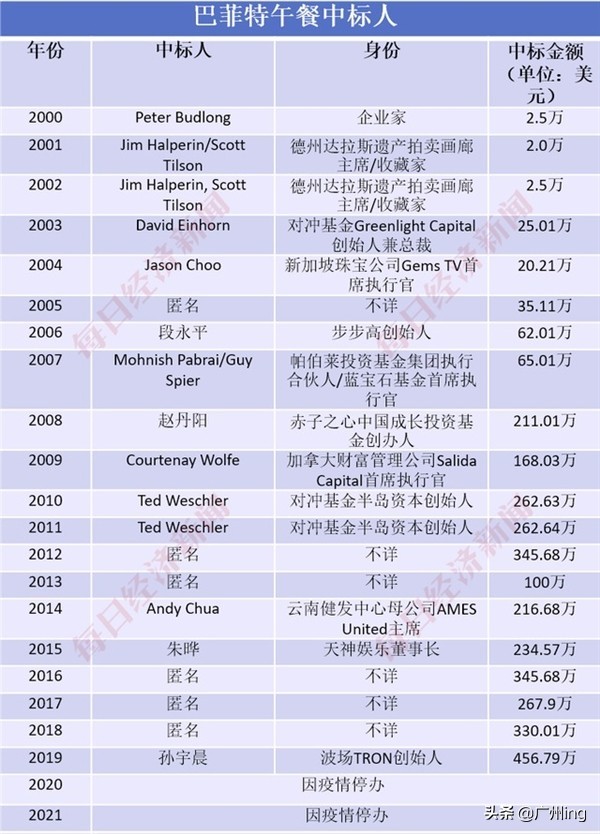 1900万美元!巴菲特“最后的午餐”成交价刷新纪录