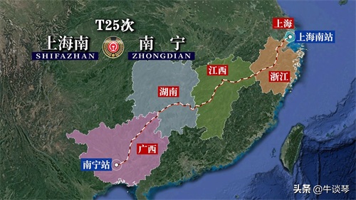 T25次列车运行线路图:上海南开往广西南宁,全程2019公里