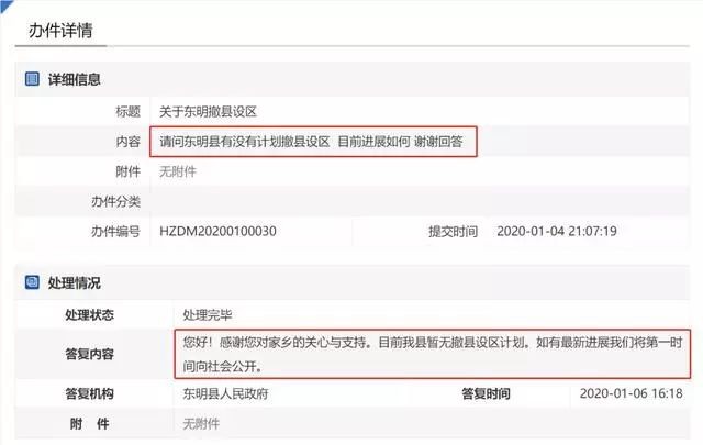 2020年1月4日,有网友通过东明县政府网站领导信箱咨询,东明县目前有没有计划撤县设区,目前进展如何?